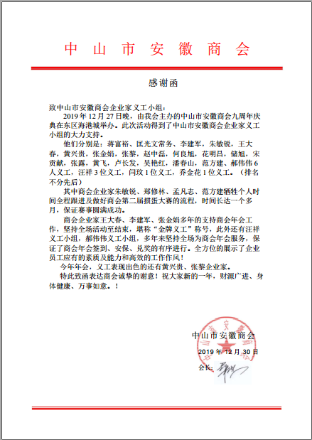 伟德官网电脑版九周年庆典义工企业家感谢函