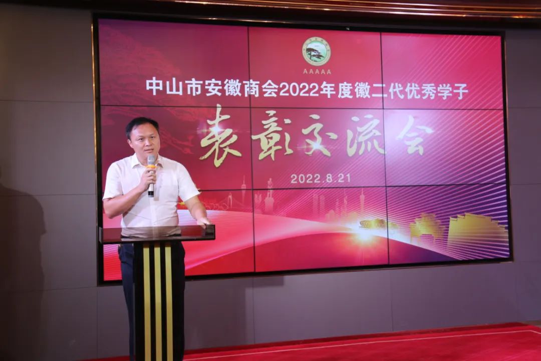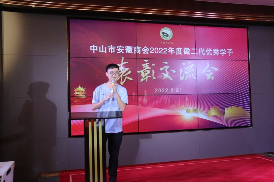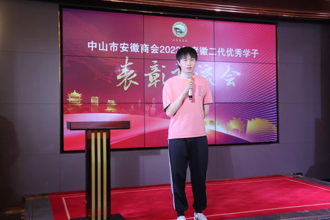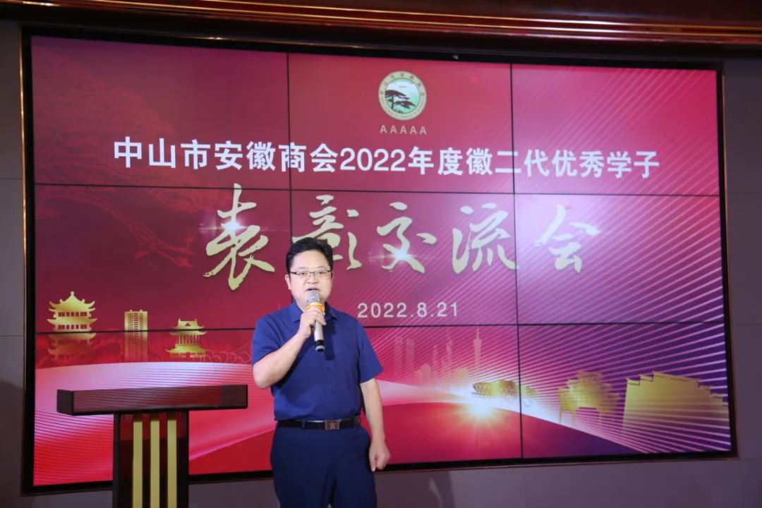 商会教育基金匡光文主任回顾了前三届徽二代优秀学子表彰情况,勉励学子无论走到哪里都要胸怀祖国,心系家乡。展望未来,也希望更多的爱心企业家积极捐助商会徽二代奖学金,爱心基金多了,才能扩大到更大的范围,鼓励更多的孩子。