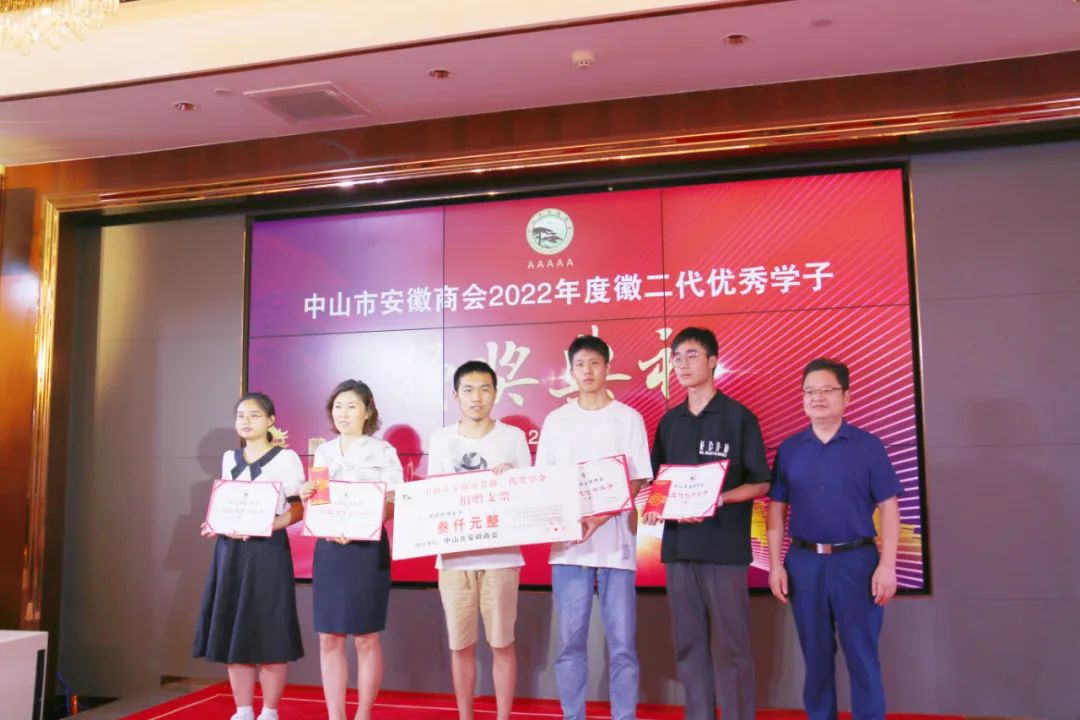 商会常务副会长、教育基金匡光文主任(右一)为高考优秀学子颁奖