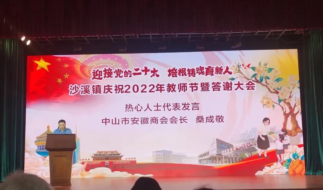 9月8日下午,中山市沙溪镇庆祝2022年教师节暨答谢大会在镇政府礼堂举行。中山市委常委、统战部部长刘美新,市政协副主席徐小莉,中山市教体局副局长陈威莅临大会,沙溪镇党委班子成员、热心企业及市民代表、新闻媒体代表以及龙山教育集团、沙溪镇各中小幼负责人、优秀教师和退休教师代表参加了活动,全镇各校作为分会场通过线上直播观看。