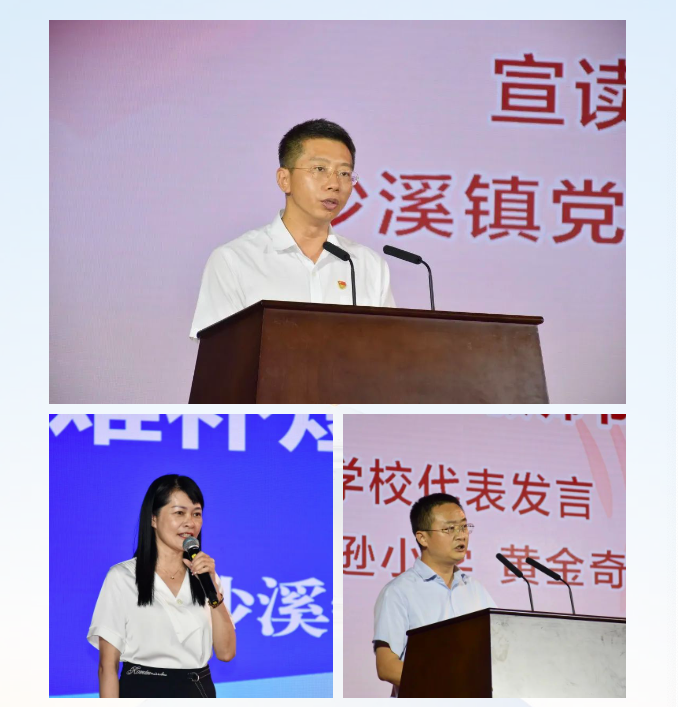 市教体局副局长陈威在致辞中对沙溪镇新一届领导班子攻坚克难、在困境中取得的成绩表示高度肯定和赞许。他表示,近年来沙溪教育成绩卓越,有目共睹、精神可嘉,希望沙溪镇总结经验,再接再厉,凝聚奋进力量,打造强师队伍,办好人民满意的教育。