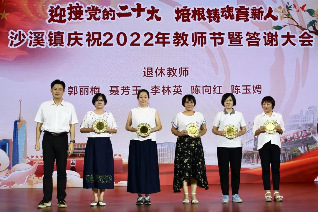 大会汇报了沙溪镇近年来教育事业的发展情况,为退休教师代表颁发纪念章,为获市师德标兵、市优秀教育工作者、市优秀教师的代表、镇优秀教育工作者、优秀班主任、优秀教师颁发证书,为热心捐助教育的社会人士和企业代表赠送纪念品。