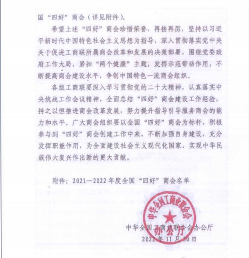 喜报!伟德官网电脑版荣获全国"四好"商会认定