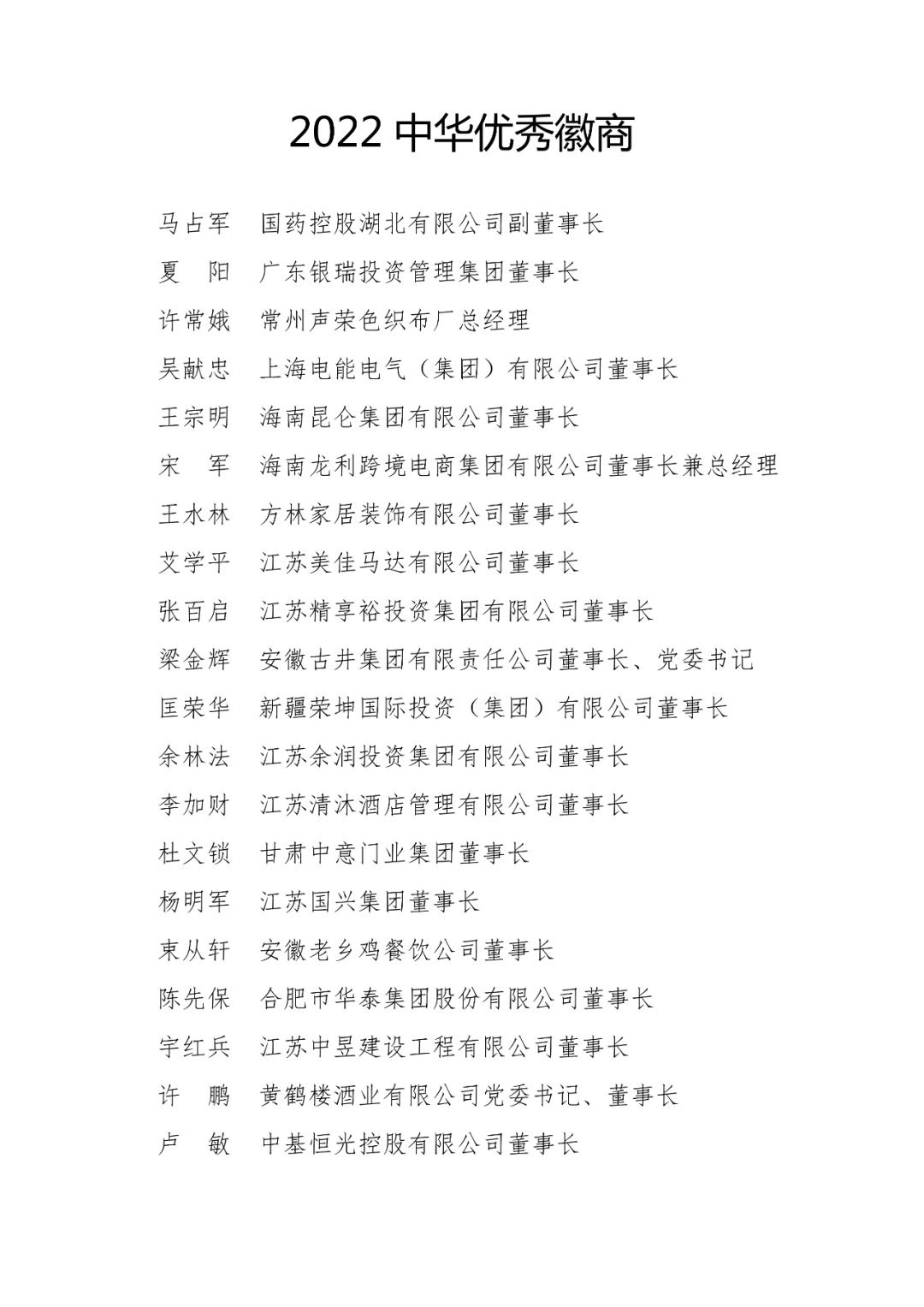 由安徽国际徽商交流协会主办的年度徽商系列评选——“2022国际徽商系列表彰”榜单现正式发布。在“2022年优秀秘书长”、“2022年度中华百名优秀徽商”榜单中,恭喜秘书长孙长征获得“2022年优秀秘书长”荣誉称号;恭喜伟德官网电脑版党支部书记、常务副会长李进、副会长阚建波获得“2022年度中华百名优秀徽商”荣誉称号。