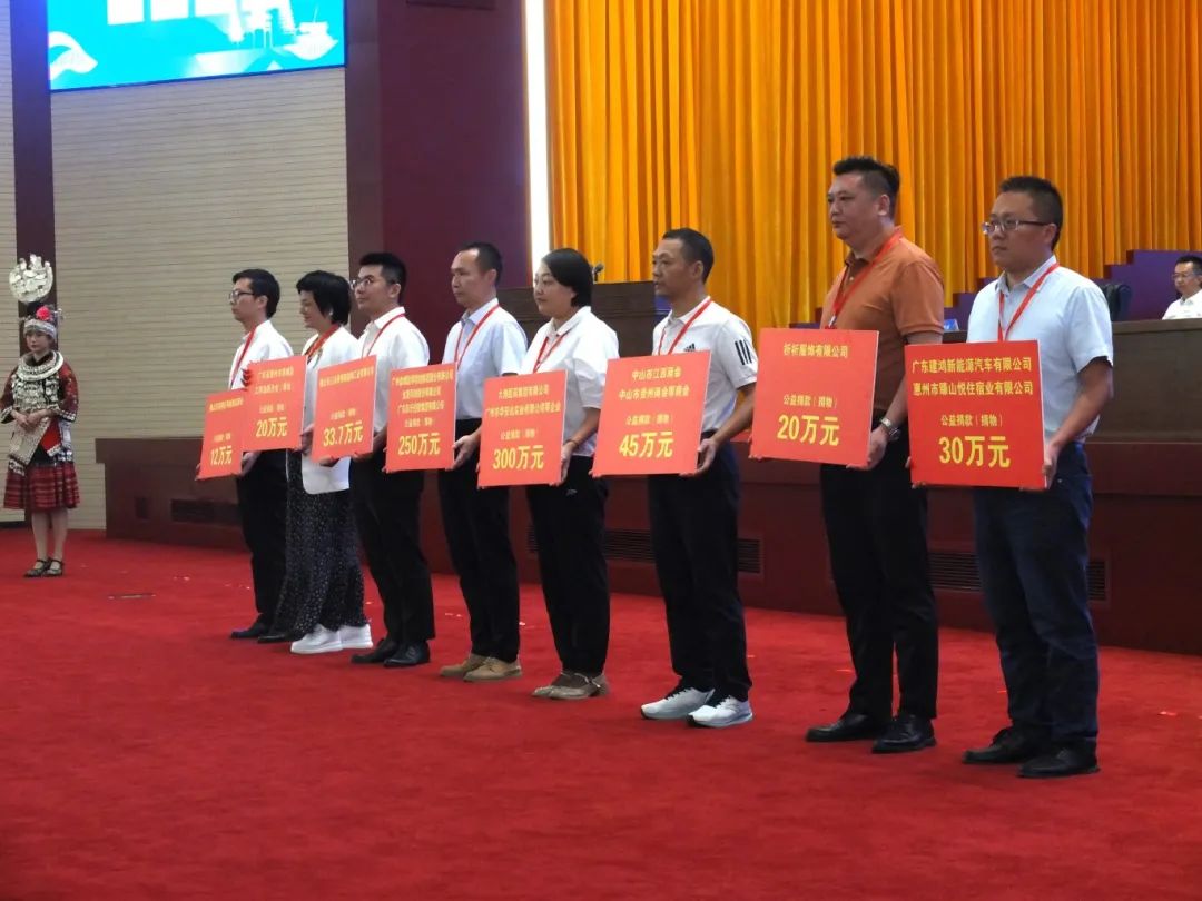 启动会上,黔东南州作了招商推介,举行了项目签约仪式和“万企兴万村”公益捐赠仪式,中山市福瑞特科技产业有限公司与六盘水恒泰电气成套设备有限公司现场签约产业项目,中山市楞龙茶业有限公司与六盘水市水城区龙场乡挖营村进行村企结对签约。中山市江西商会、贵州商会联合小榄镇工商联、中山市安徽商会、湖南商会、江苏商会、温州商会、湖南益阳商会、湖北襄阳商会、阳春商会、经济促进会、办公家具行业协会、家具商会等共13家商协会捐款45万,对六盘水市第八中学慈善阳光班36名贫困学生进行资助。