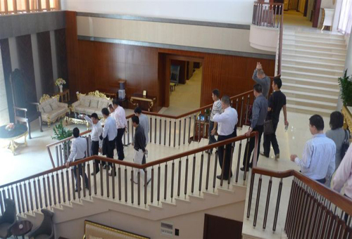 走访完中山市粤宏石油化工有限公司,12日上午11时,商会领导一行转至走访广东国泰家具集团。广东国泰家具集团,是中国规模巨大的家具生产基地。拥有最强大的机器设备和技术力量,员工2000多人。下设三大工厂,专业生产超五星级酒店家具、办公家具、门套门线等。国泰家具多次在国际家具博览会上荣获设计奖和优质产品奖,一直走在中国家具行业的前列。