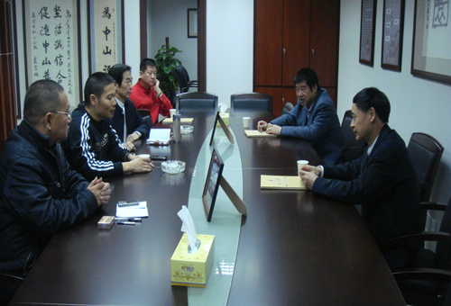 广东省经信委喻建飞副主任(中)到商会视察,商会常务副会长蒋富裕会见来宾。