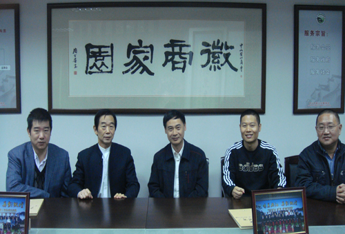 黄山商会常务副会长蒋富裕(右二)、黄山商会常务副秘书长熊国举(左二)、商会副秘书长杨进东(右一)