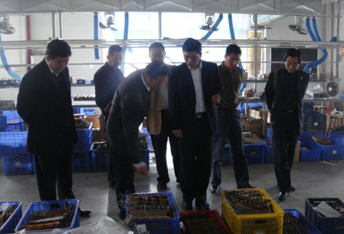 黄山(安徽)商会会员、中山市健力橡塑厂董事长任清里陪同商会一行参观生产车间。