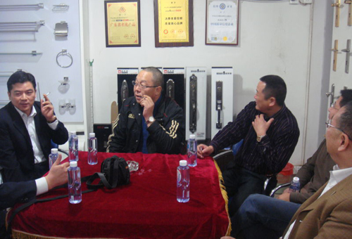 黄山(安徽)商会会员、中山市家顿五金制品厂董事长王林军陪同商会一行参观产品展间。