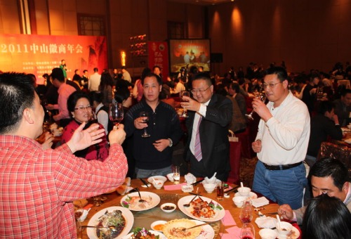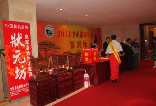 2011年1月19日下午18时,由中山市黄山(安徽)商会主办、中山市皇家状元坊红木家具有限公司协办的2011徽商年会在香格里拉大酒店召开。出席年会的有中山市政协、市委统战部、团市委、市工商局、市城管执法局、市民政局、工行中山分行、交通银行中山分行的领导和商会领导班子成员,还有商会会员、乡友、兄弟商会代表及各界朋友,近400人齐聚一堂。