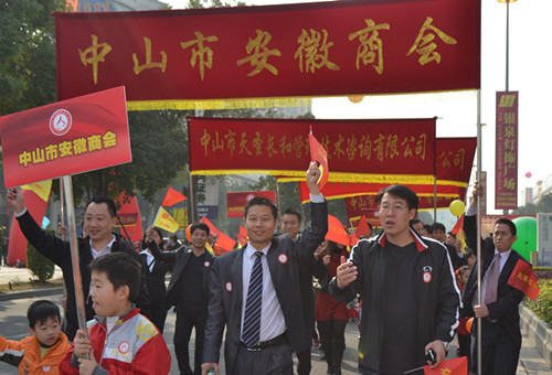 本次慈善万人行活动声势浩大,其中有一支高举五家红底金字横幅的大方队格外引人注目,那就是由中山安徽商会和天圣长和管理技术咨询有限公司、众衡传媒运营有限公司、真本照明有限公司、新旭进出口有限公司等四家会员单位员工共同组成的近百人的方队。走在这支队伍前列的是积极响应商会号召各捐一万元的四家单位的董事长,也是商会常务副会长的蒋富裕、欧元春、张金明和副会长王满龄。会员盛世福、王涛、杨杰,秘书处杨进东、余长春、刘芬等也参加了活动。每位队员手拿印有商会和各自单位名称的小红旗,一路欢声笑语不断,声势浩浩荡荡,既展现了年轻的伟德官网电脑版积极回报社会的良好风范,也体味了扶贫济困、乐善好施的美妙心得。7、8个商会成员的小孩或举牌、或舞旗、或摇气球,都坚持独立走完了估计有8公里的全程,在一场仿佛慈善嘉年华的氛围中,一颗慈善仁爱的种子在他们心底埋下了,相信将会一路伴随他们健康成长。