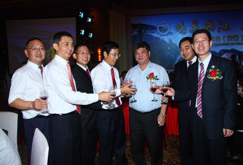 中山市黄山(安徽)商会理事会邀全场嘉宾共同举杯祝贺商会成立。