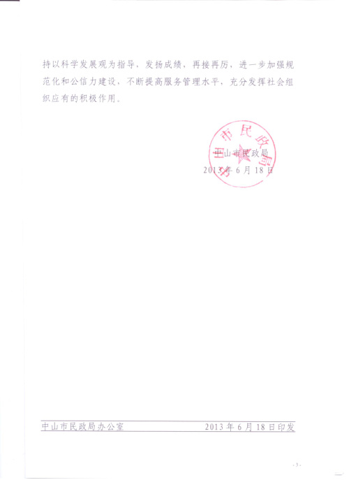 日前,中山市民政局发出《关于中山市2012年下半年社会组织等级结果的通报》的文件,对中山市慈善总会等22家社会组织予以通报并颁发相应等级牌证,伟德官网电脑版被评为中山市异地商会中唯一的一家“4A级社会组织”。