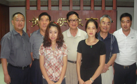 安徽省国际徽商交流协会会长吴昌期(中)、陶行知研究会会长会长陈瑞鼎(左二)、
