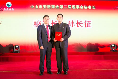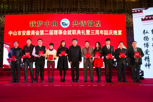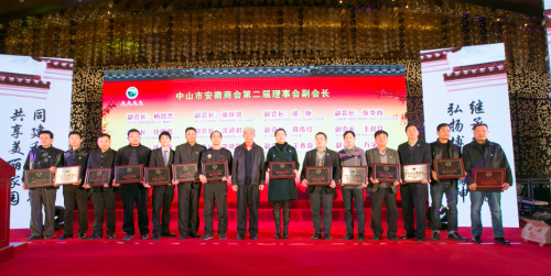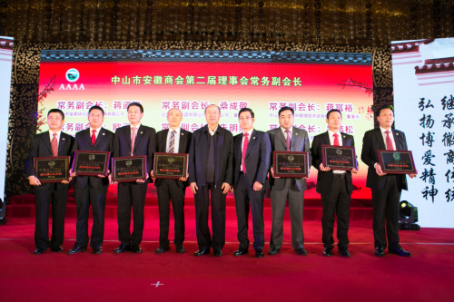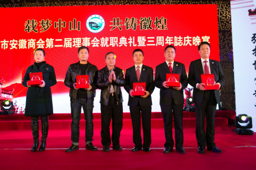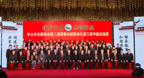 12月20日,伟德官网电脑版第二届理事会就职典礼暨三周年誌庆晚宴在中山市南区永安新城皇冠假日酒店隆重举行。安徽省委原书记卢荣景、军委空军原副政委中将徐承栋、安徽省人大原副主任吴昌期、安徽省政协原副主席季家宏、安徽省政府驻广州办事处主任朱丹、安徽省政府驻广州办事处副主任孙玉娥、中山市委常委、常务副市长谢中凡、中山市人大副主任吴建新、中山市政协副主席韩泽生、中山市委统战部副部长、市工商联党组书记林春红等重要领导出席,商会顾问单位领导,中山市青企协、各镇区商会、异地商会等66家商会的会长和秘书长;中山皖籍乡友代表、商会会员等450多名嘉宾欢聚一堂,宏大的场面、浓浓的乡情、温暖着在场的每一个人。