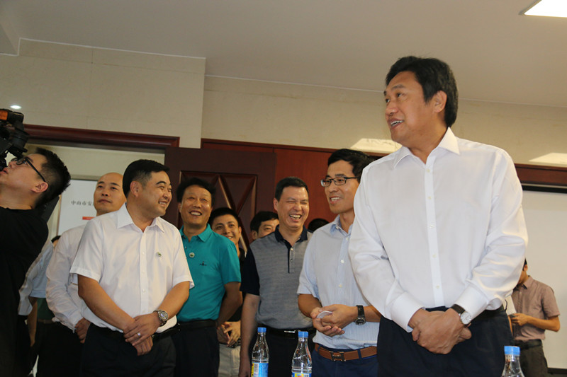 广东省副省长邓海光、中山市副市长高瑞生认真听取我商会徐克伟会长汇报商会五年来的工作情况