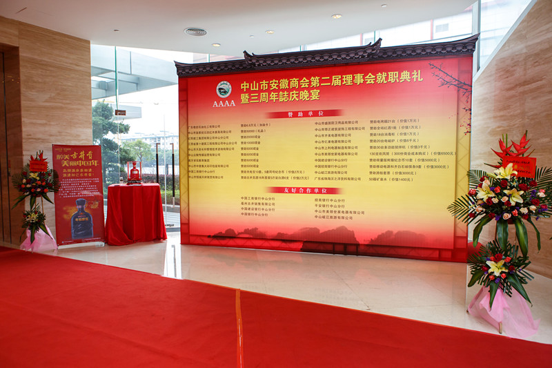 6.场外设赞助单位展示区,循环播放企业宣传片、放置企业宣传展架;冠名单位、协办单位可现场展示企业产品;(在走廊上摆放赞助单位的广告内容,高2米,宽1米,商会统一制作,无须赞助方自行制作(效果如下图)2016年1月5日前未提供属于自动放弃此福利)
