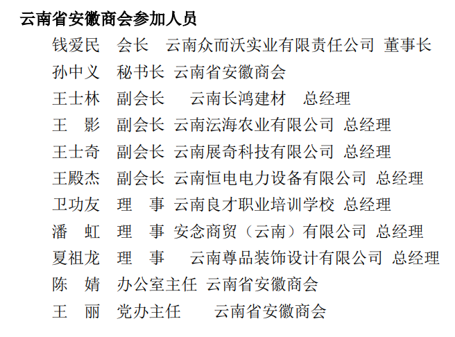 2023年10月我商会理监事会成员云南省安徽商会交流学习