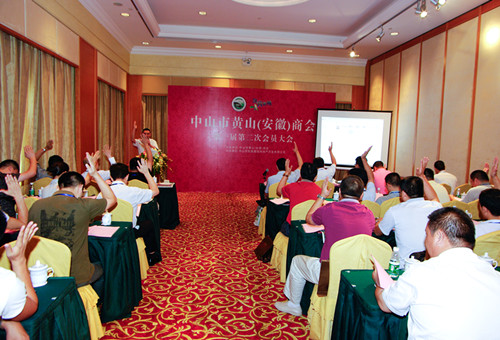 商会常务副会长高德富会上主持修订商会章程表决现场