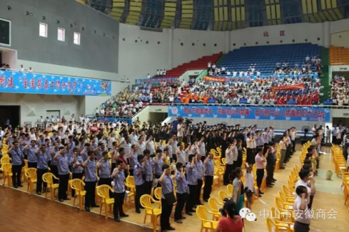 6月15日下午,以“老乡不能害老乡 同乡同心齐禁毒”为主题的百万新中山人禁毒系列大行动之古镇镇禁毒志愿者企业分队授旗暨禁毒基金会成立仪式在古镇镇体育馆举行。我商会常务副会长欧元春、蒋富裕,理事郝伟伟、秘书长孙长征等商会企业员工近50人参与此次活动。伟德官网电脑版常务副会长欧元春先生作为活动唯一领誓人,带领全体与会人员宣读禁毒誓词。