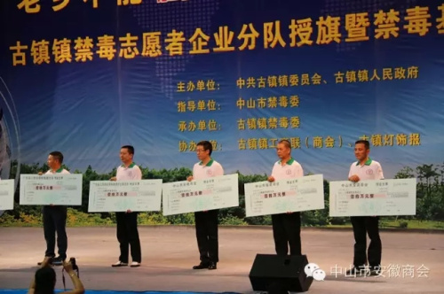 为了积极响应中山市创建“全国禁毒工作示范市”的号召,充分发挥中山市禁毒组织在禁毒工作中的积极作用,在百万“新中山人”中形成人人认识毒品,人人拒绝毒品,人人举报毒品的局面,解决老乡之间买卖毒品、聚众吸毒、制作毒品、贩运毒品的问题,营造举报毒品犯罪,共同抵制毒品,共同帮扶戒毒的全民戒毒良好氛围,探索解决流动人口社区戒毒康复难题,古镇镇党委政府在中山市戒毒委的指导下,举办了古镇镇禁毒志愿者企业分队授旗暨禁毒基金会成立仪式。