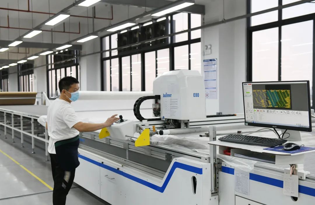技术工人坐在电脑前,只需简单操作,裁床车间的精密刀刃就会沿着系统设定好的路线,对几十层的布料完成精确切割;检验车间里几乎看不到检验师,取而代之的是AI智能验布机,这些机器不但检验准确,而且还能实时让管理员看到质检报告和数据分析结果。这是记者近日在广东元一智造服饰科技有限公司(下称“元一智造”)5G高端智慧产业园看到的情形,成衣的整个制造过程实现了智能化和自动化。