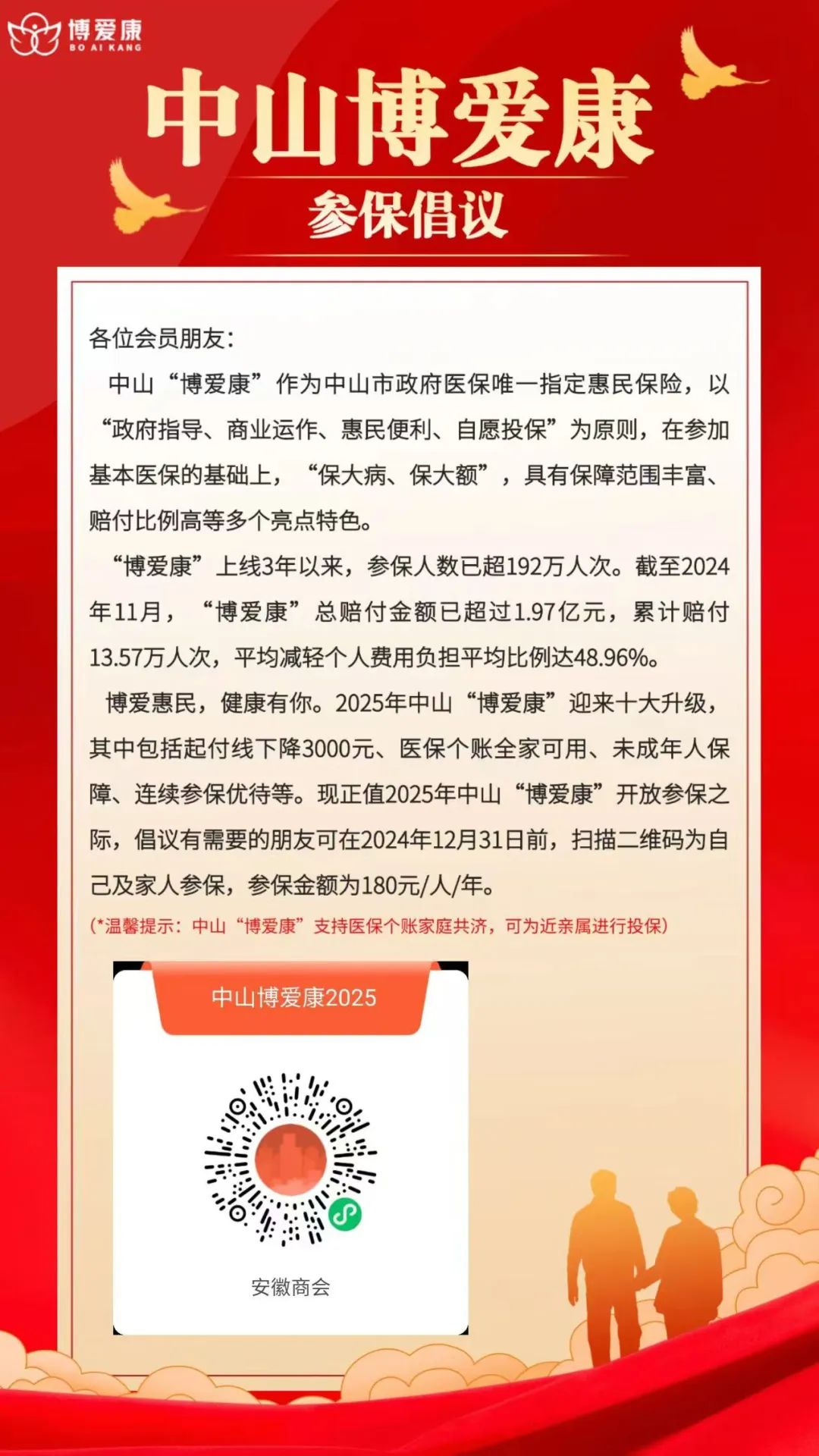 “博爱康是惠民工程,一定会坚持惠民原则。”吴俊杰表示,2025年“博爱康”依旧是中山市政府医保唯一指定普惠型商业补充医疗保险,以“政府指导、商业运作、惠民便利、自愿投保”为原则,旨在保障民生、减轻群众就医负担,更好满足人民群众多层次、多元化的医疗保障需求,构筑多层次医疗保障体系,切实增强人民群众的获得感、幸福感和安全感。