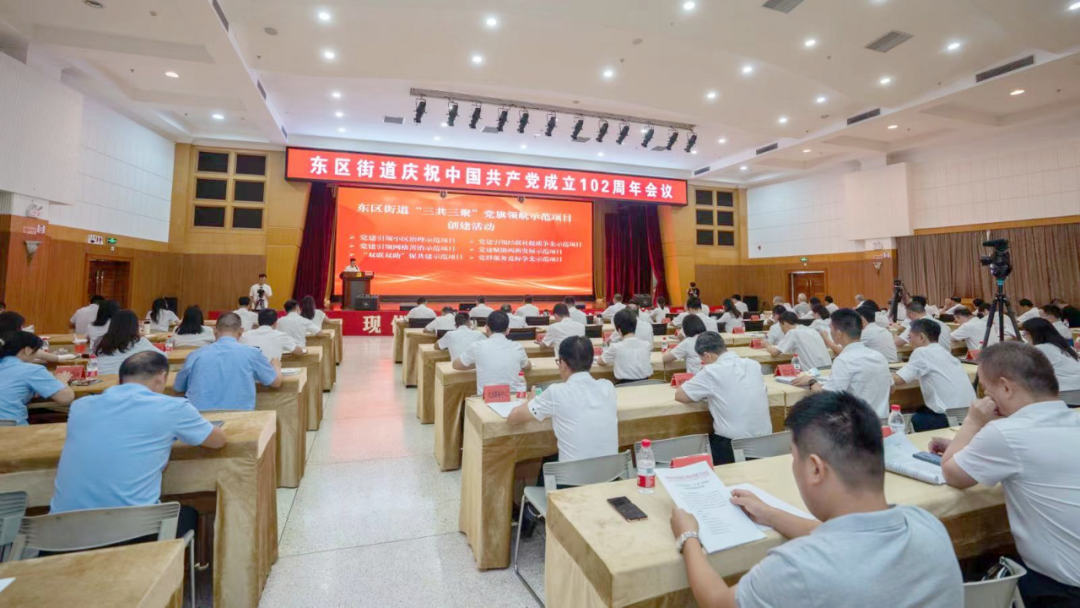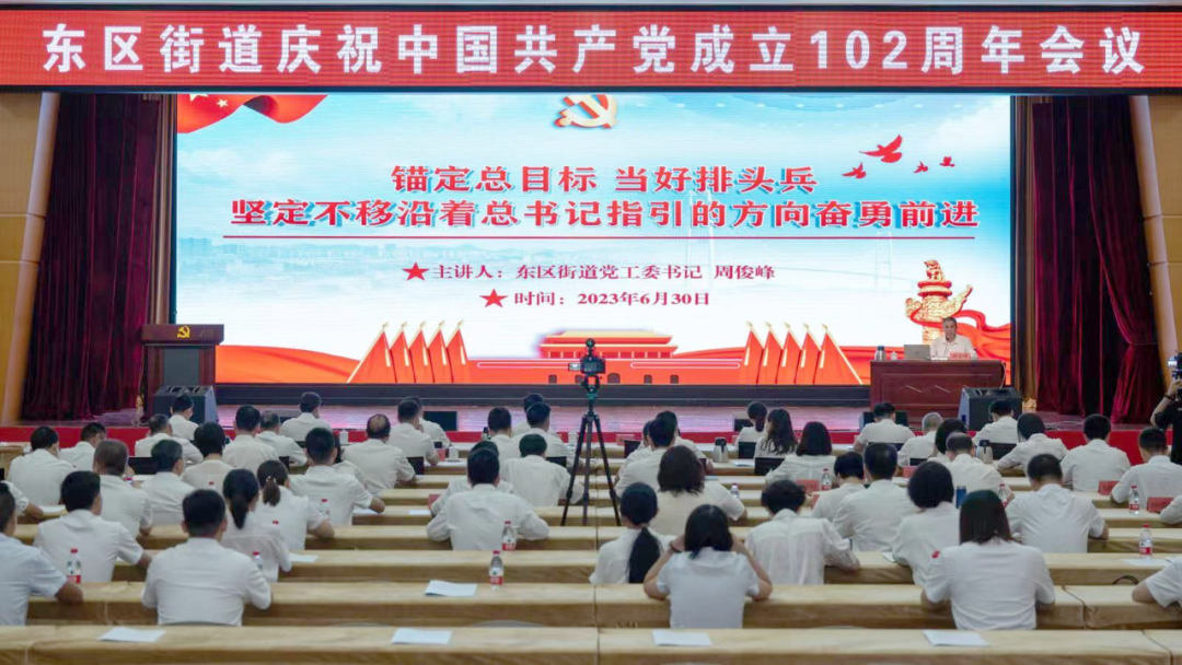 6月30日,东区街道召开庆祝中国共产党成立102周年会议,激励广大党员牢记宗旨、砥砺奋进,筑牢信仰之基、补足精神之钙、把稳思想之舵,推动街道各项工作再上新台阶。街道留家领导班子成员、原领导班子成员,机关各部门、事业单位负责人,各基层党委书记,公安分局、公办学校、经联社党组织书记,“两新”组织党组织书记代表,今年获“光荣在党50年”纪念章老党员代表,以及今年上半年新发展党员代表参加会议。