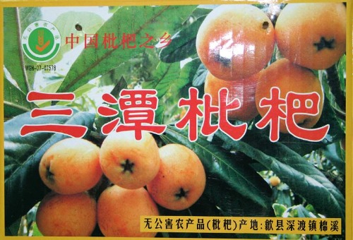 “三潭枇杷”有20多个品种,在国外享誉最高的是“大红袍”和“光荣花”。“大红袍”黄皮但肉却透出红色,“光荣花”则是花蒂处长了一个明显的五角星从而命名。一级枇杷每公斤只有20来个,绵潭村甚至培植出每公斤只有10个的“枇杷王”。枇杷是老幼皆宜的益果,民间有“天上王母蟠桃,世上三潭枇杷”的赞语。鲜食枇杷有利于解渴生津,利肺健胃,有益健康。其营养成分除含有较多的果糖外,还含有大量的维生素B17,B17是一种防癌营养素。在葡萄糖注射液问世以前,自古我国中医常常用枇杷汁以维持不能进食者的生命,可见枇杷的营养价值非常高。